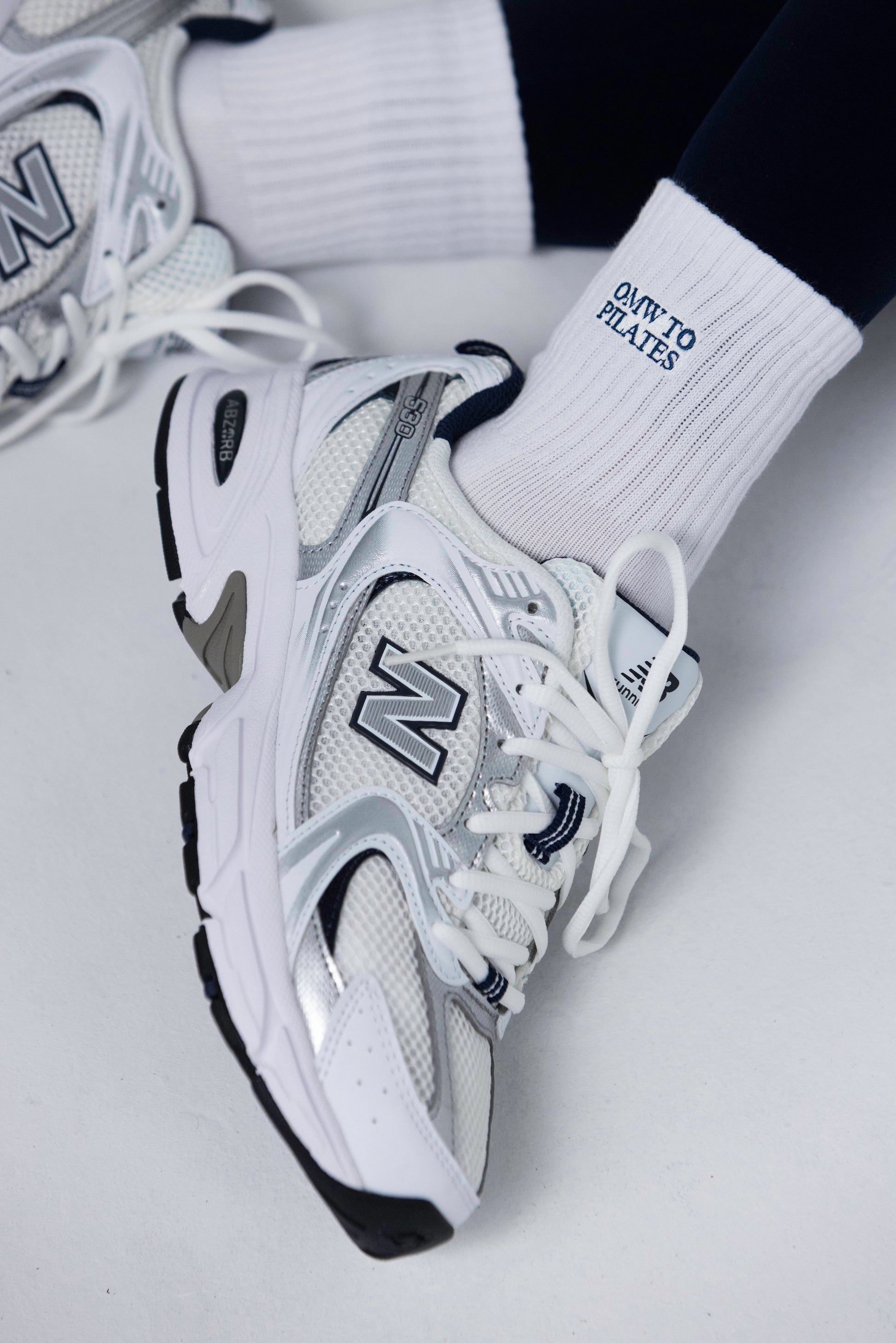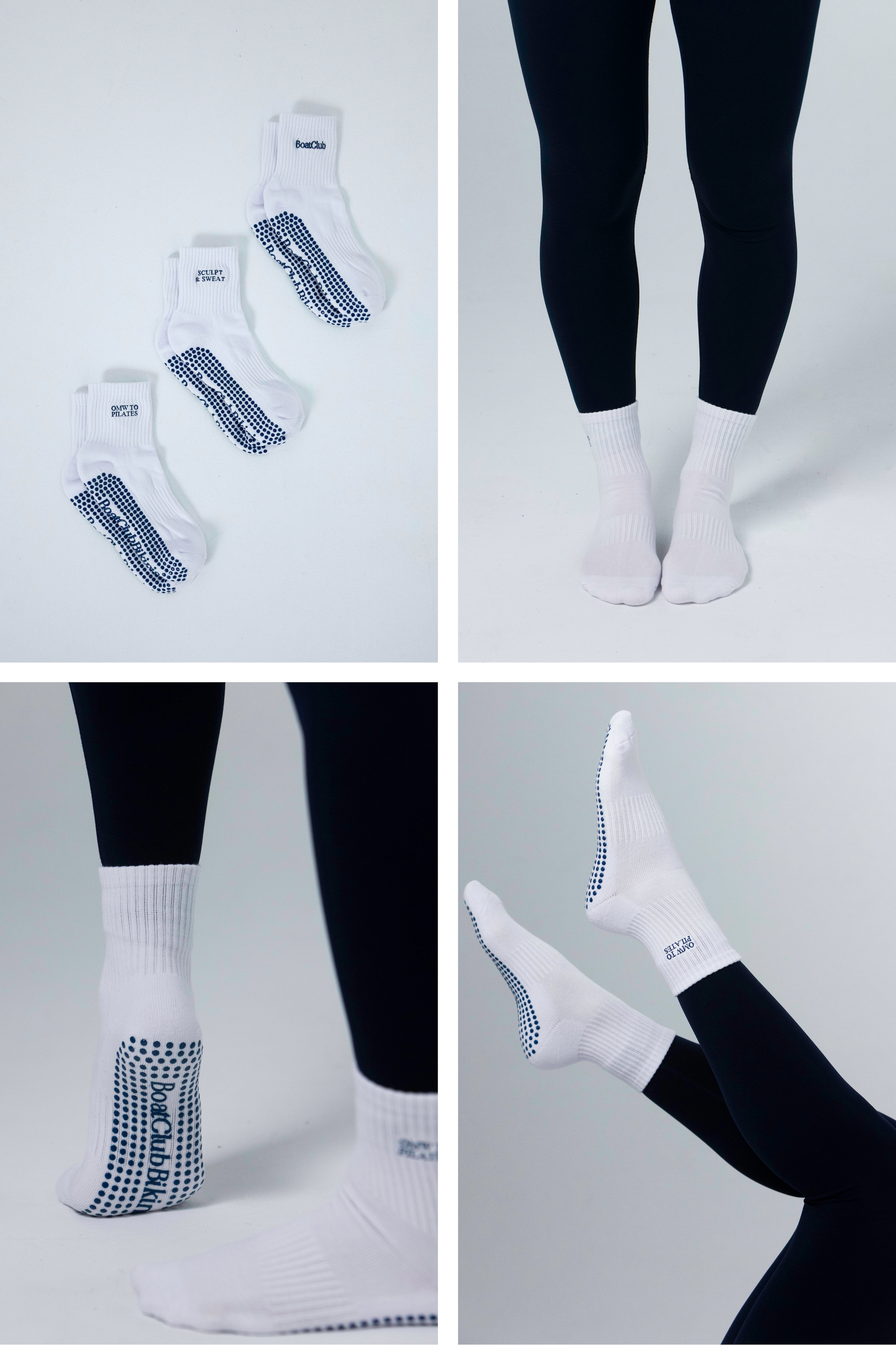 Meet your new studio essential. Designed with extra cushioning underfoot and built-in arch support, these socks move with you through every squat, pulse, and stretch. The small silicone grips provide secure traction that molds naturally to your foot, keeping you grounded without feeling bulky. Finished with an embroidered detail for a touch of style, these half crew socks deliver the perfect mix of comfort, support, and sleek design. Created by Pilates and Lagree teachers for the girl on the go.